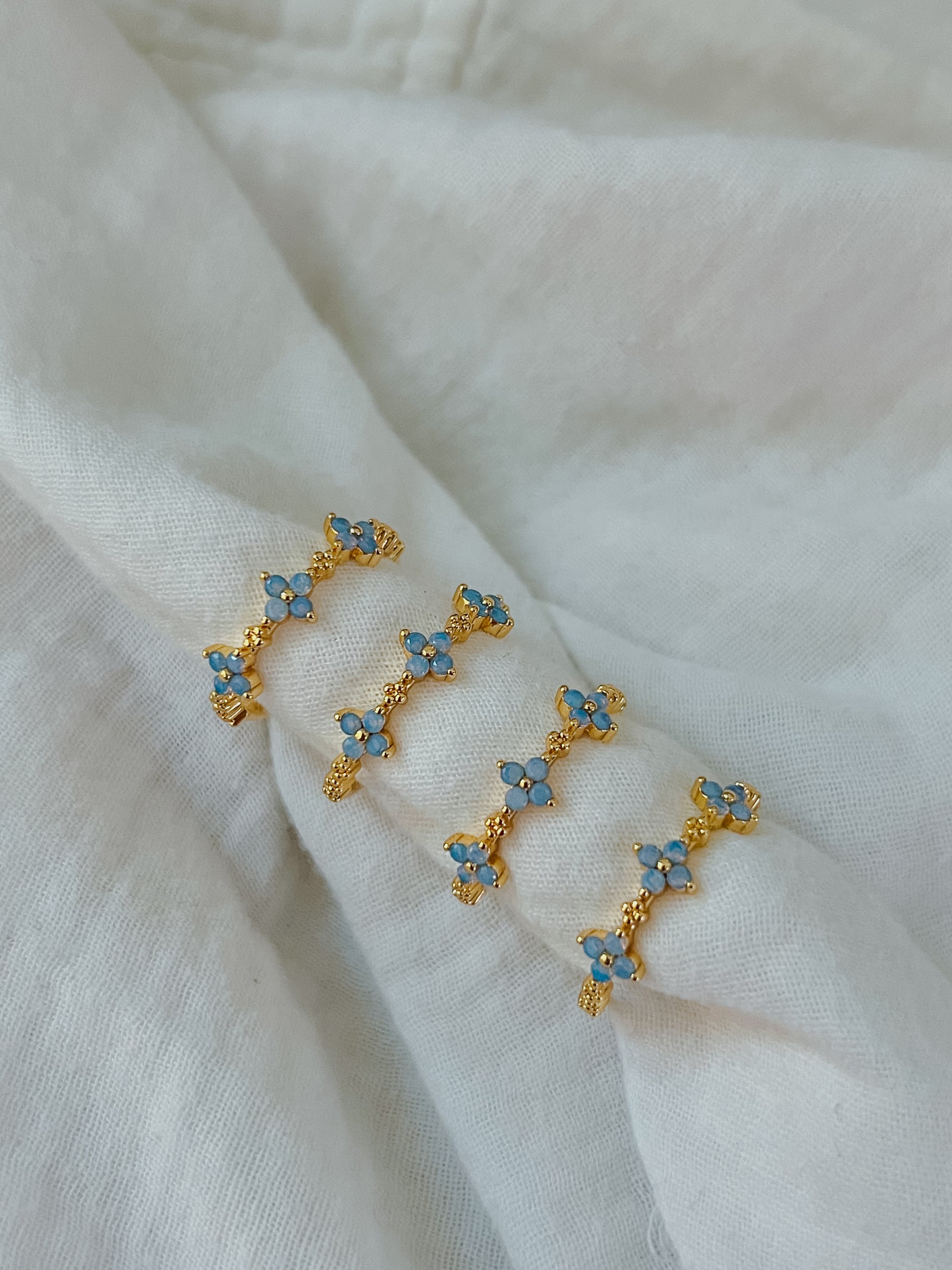 Add a pop of whimsy with our blue flowers ring! The vibrant blue flowers are paired with a sleek gold ring, bringing a touch of playful elegance to any outfit. Perfect for the lighthearted fashionista.