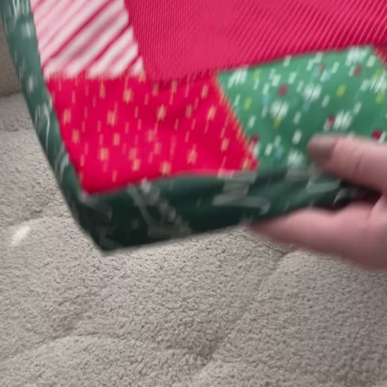 Get into the holiday spirit with our Christmas quilt tote bag! Inspired by grandma's patchwork quilt, it's both festive and functional. Perfect for carrying all your gifts (and a little bit of nostalgia) wherever you go.