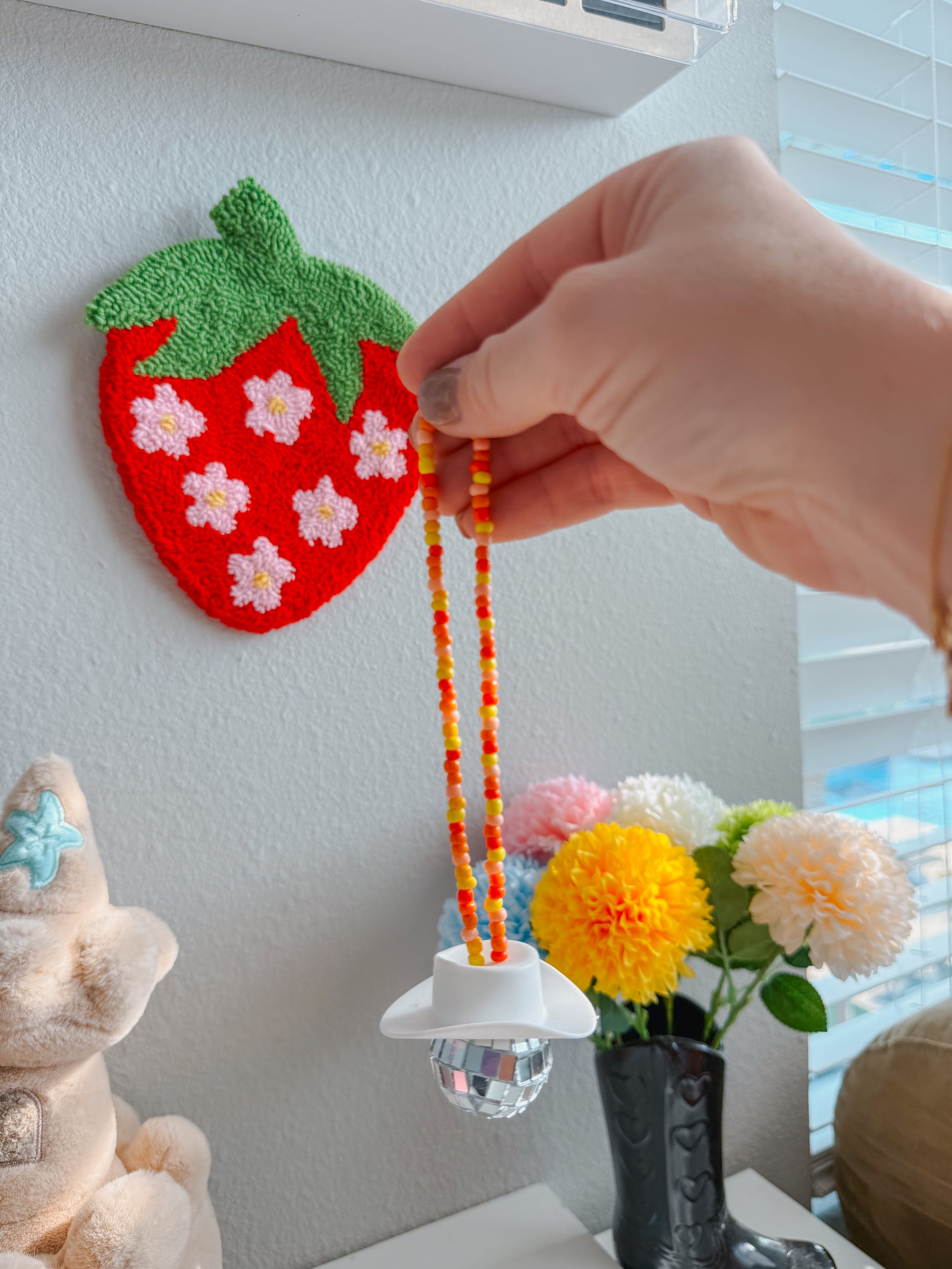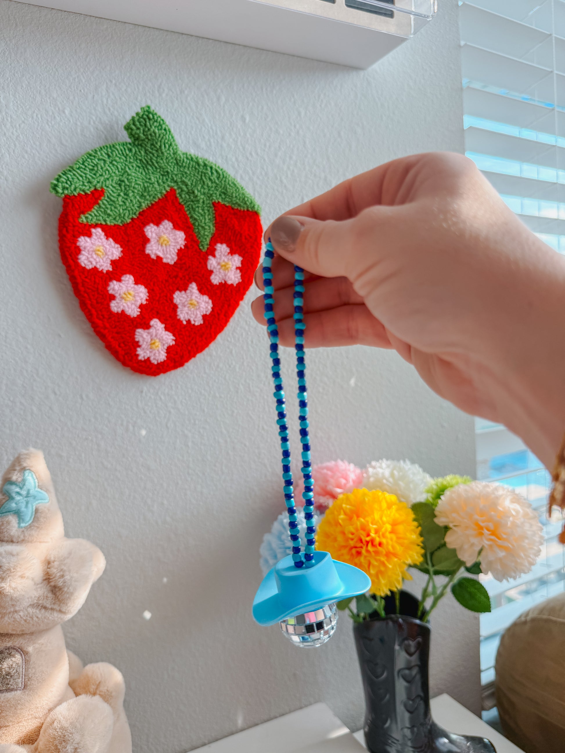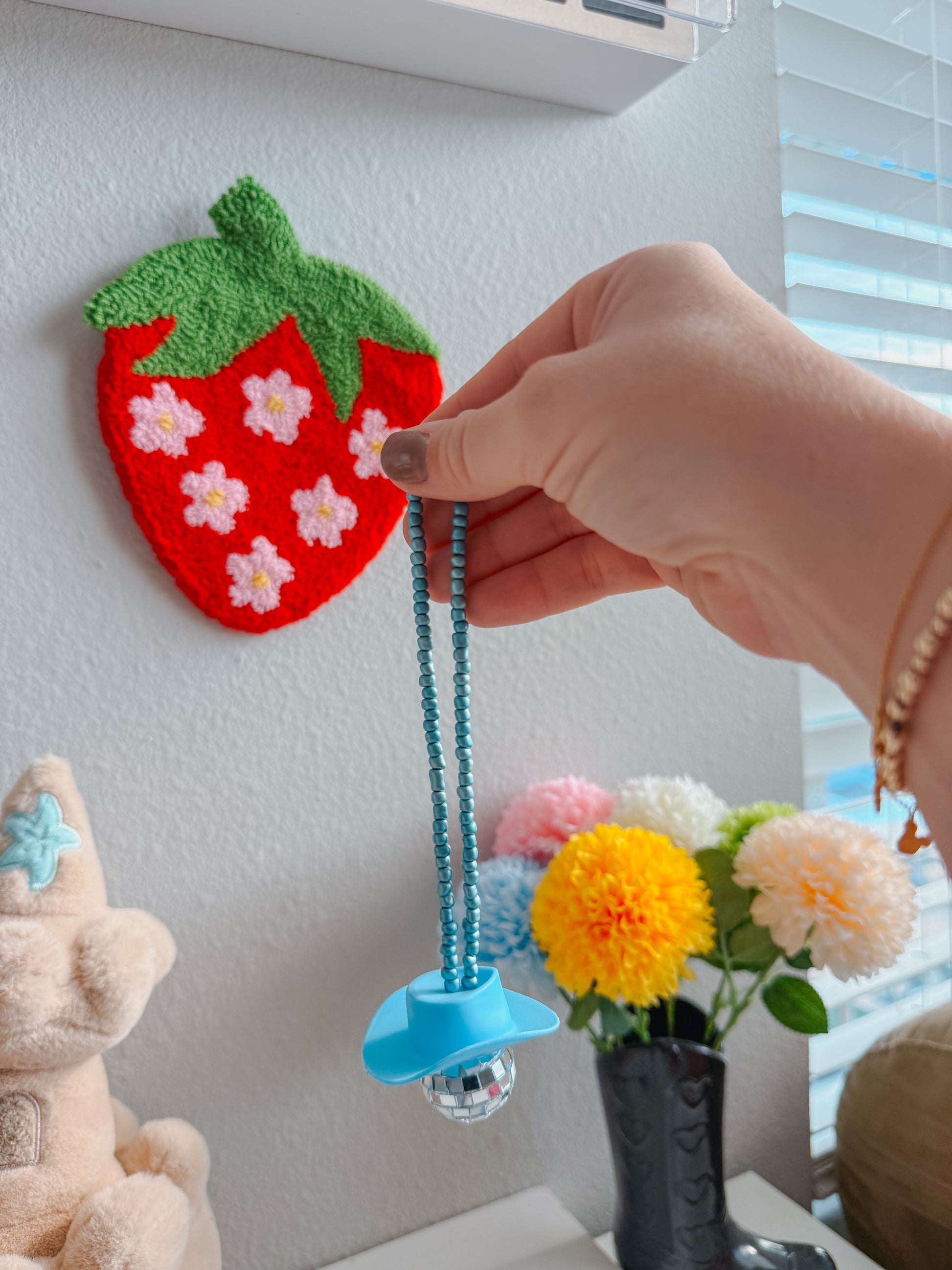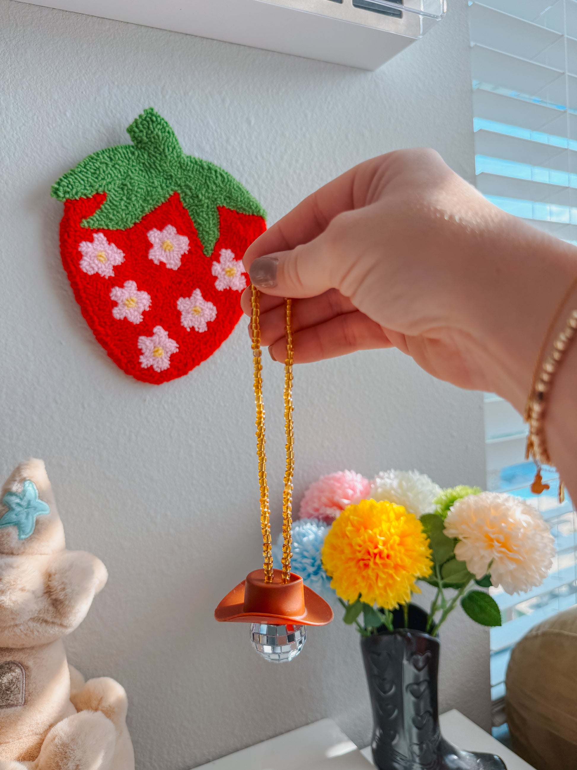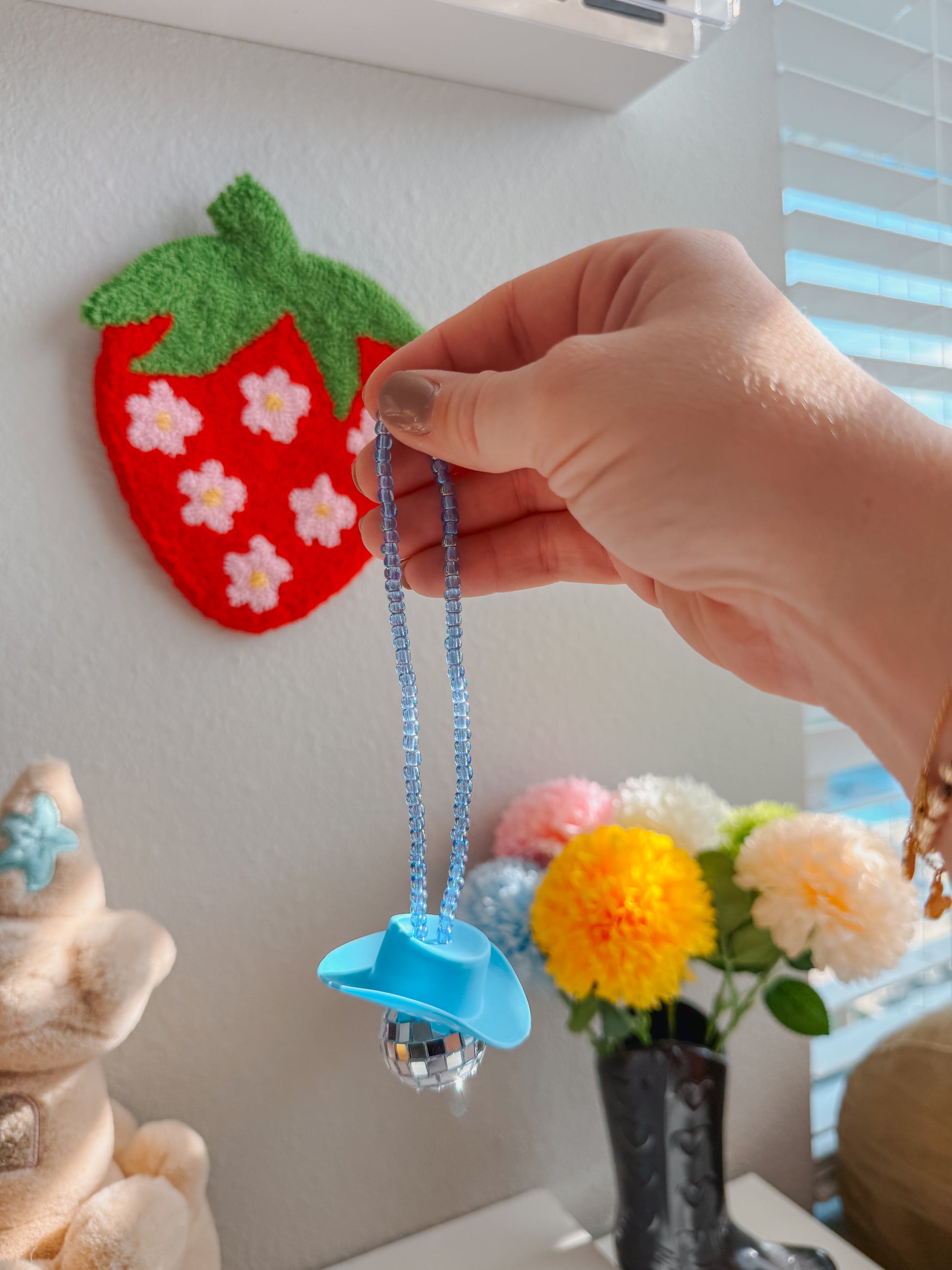 Turn your car into a party on wheels with this disco cowboy car hanging! Featuring a sparkly disco ball and a cool cowboy hat, this quirky car accessory is sure to turn heads and bring some fun on your next road trip. Yeehaw!