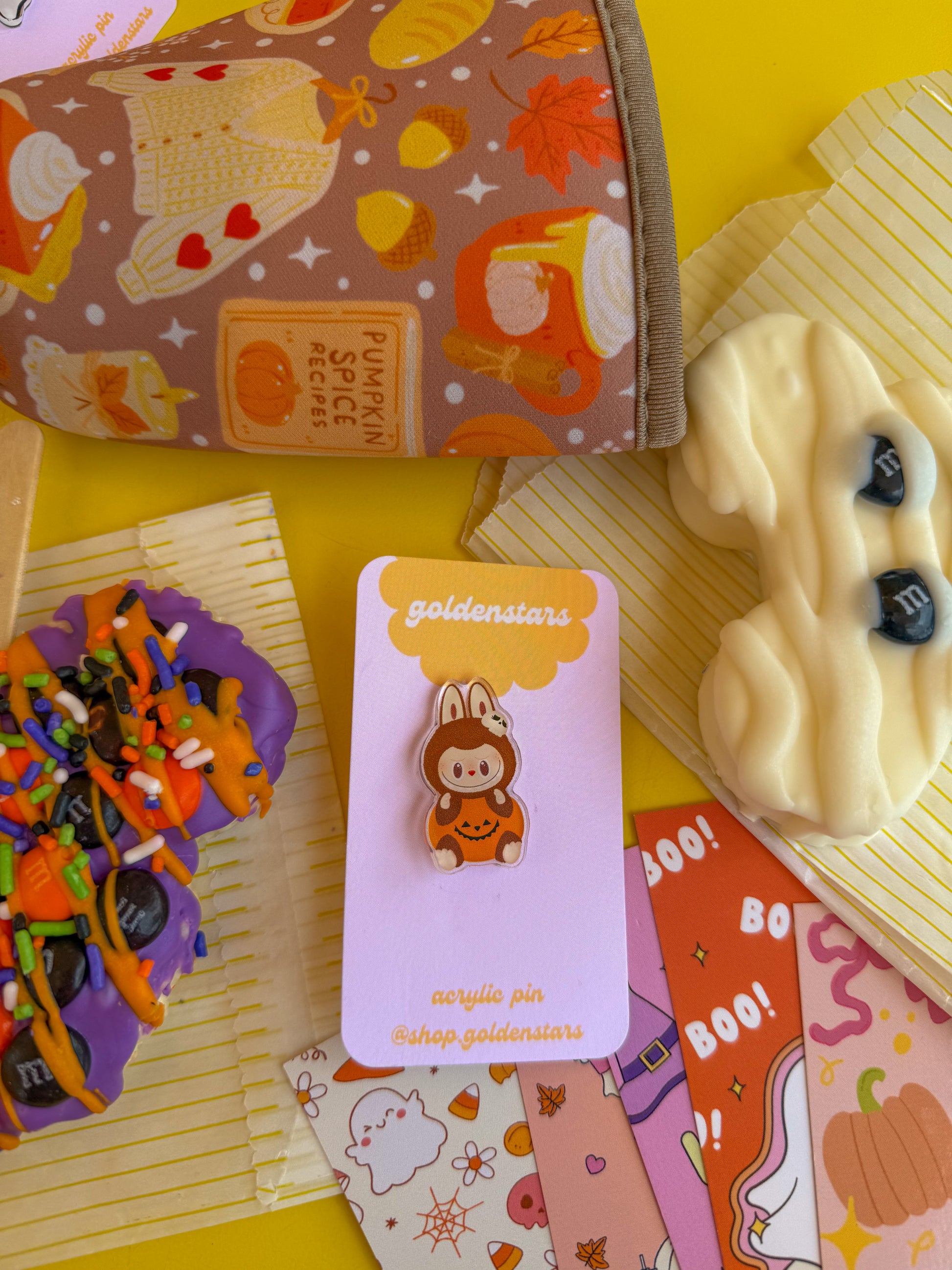 Add a dash of cuteness to your Halloween look with the Pumpkin Labubu pin! Featuring adorable Labubu peeking out from a bright pumpkin, this playful pin is perfect for celebrating the spooky season with a smile. Wear it on your bag or jacket for a festive touch that’s sure to brighten any outfit.